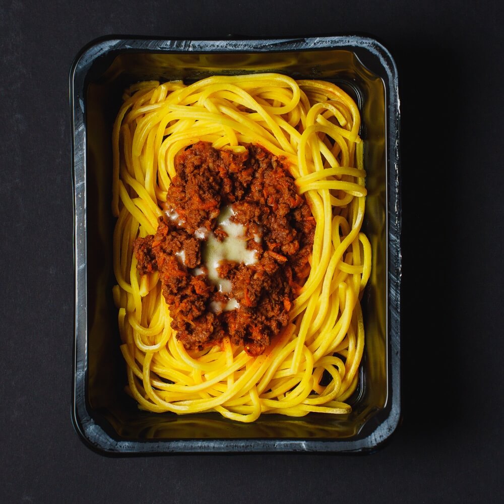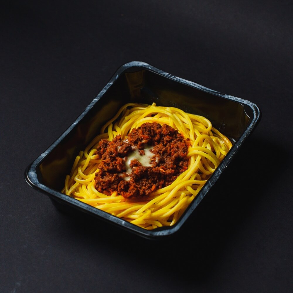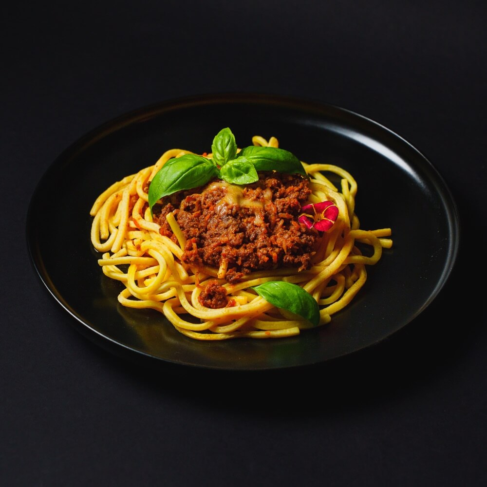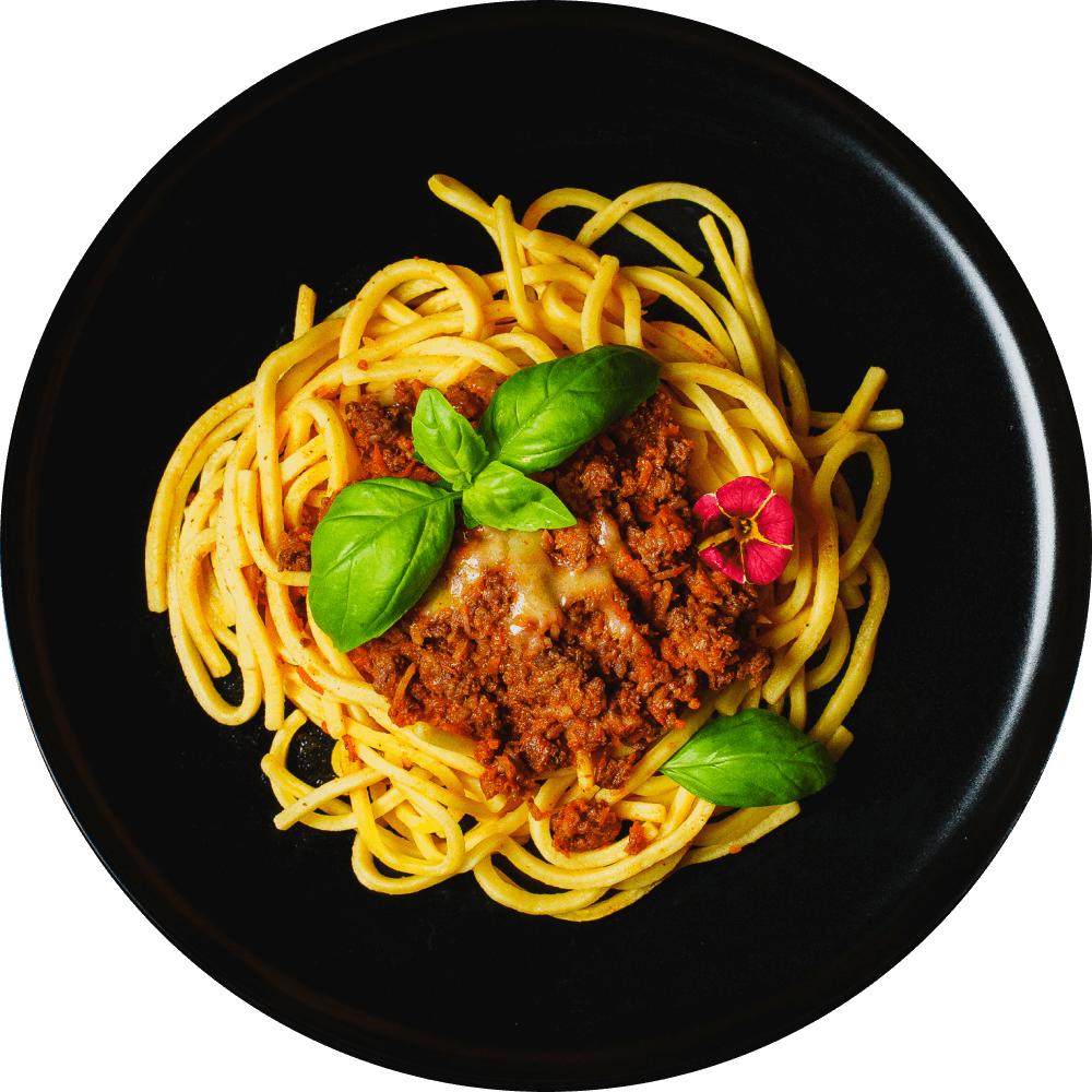 Spaghetti Bolognese s čerstvo pomletým hovädzím mäsom, mozzarellou a domácou bolognese omáčkou.