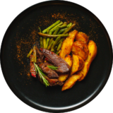 What’s better than a summertime favorite you can eat every day? Premium quality Certified Black Angus Steak, grilled shrimp, and a green medley with a side of lemon herb sauce made with olive oil imported from Greece.
